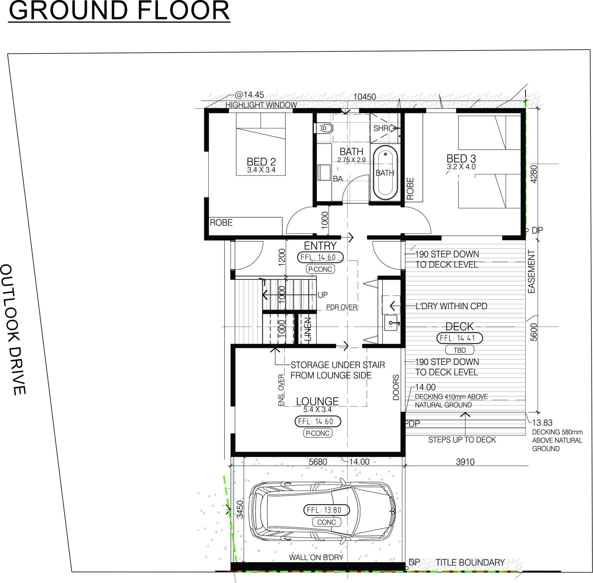 Architectural drawing (subject to council approval) showcases a contemporary two-level home featuring: 3 bedrooms, 2 bathrooms
