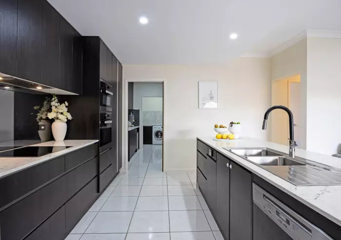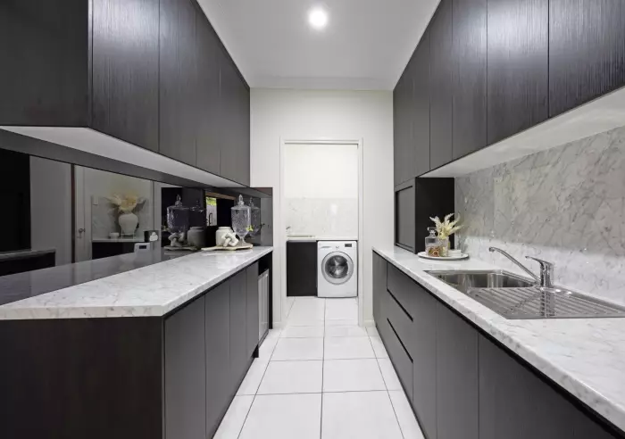 • Beautifully appointed butler’s pantry with additional sink, extensive storage and direct connection through to the garage and laundry with matching cabinetry for a seamless, high-end finish.