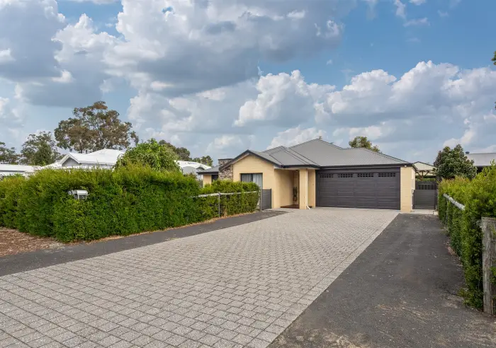 A modern four-bedroom home on a 2,000m² block in The Woods Estate, with an 8x4m pool, a 12x10m powered workshop and a converted home office studio. If you've been looking for space to actually spread out, this is it.